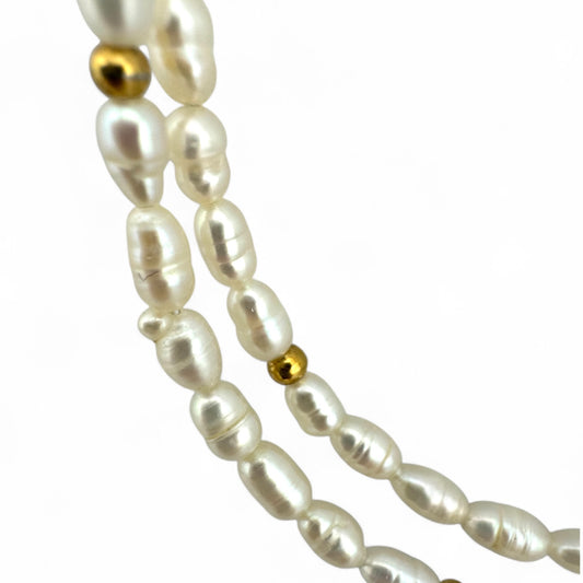 Cultured Pearl Double Strand Necklace with Gold Plated Beads