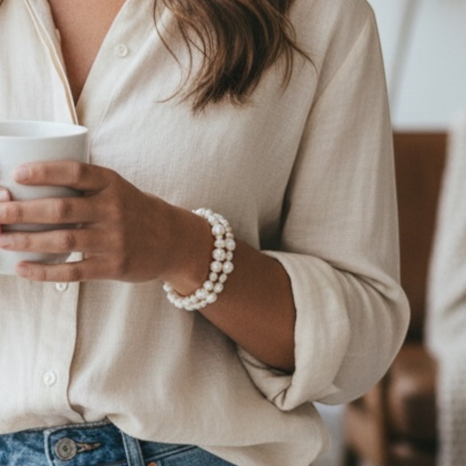 An elegant expression of individuality — this double-wrap pearl bracelet celebrates natural beauty and thoughtful design