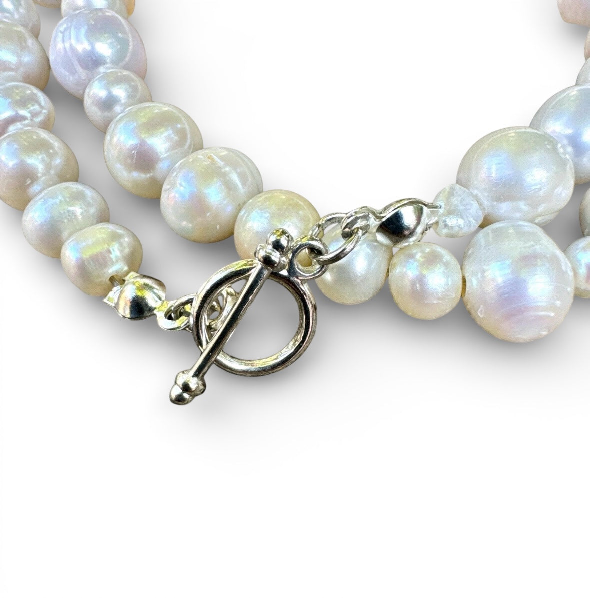 Baroque Freshwater Pearl Double-Wrap Bracelet with Silver Plated Toggle