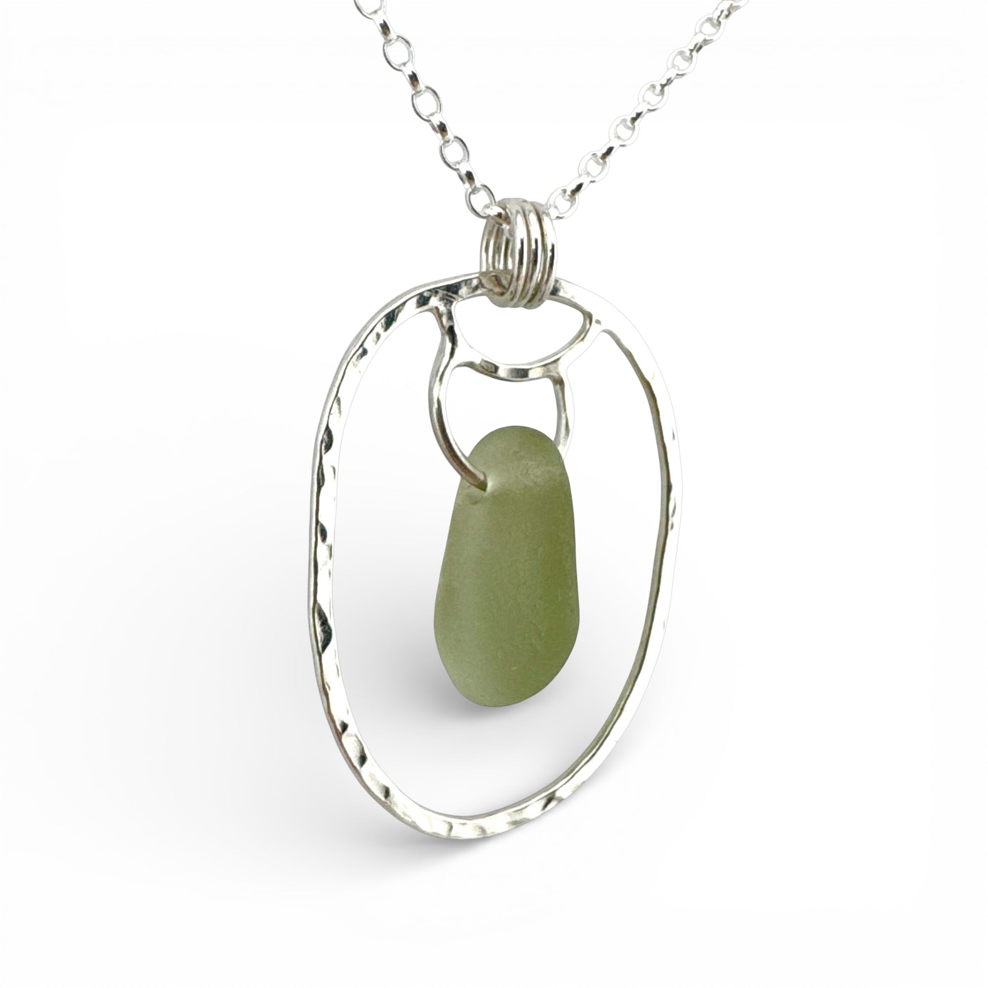 Green Sea Glass Pendant Necklace in Recycled Sterling Silver – Handmade Suffolk Seaglass